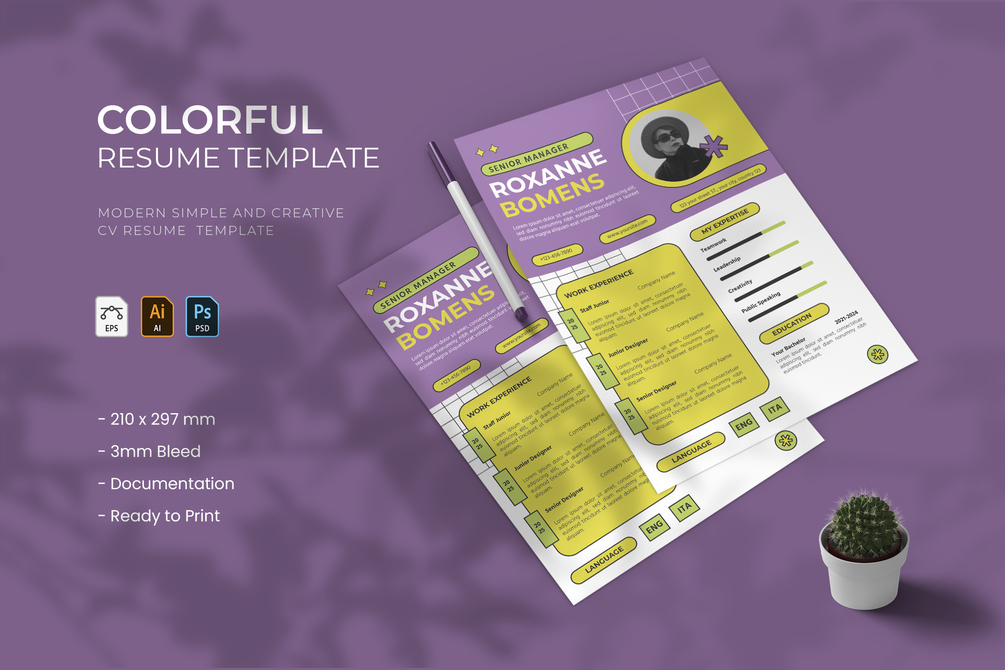 creative resume and cover letter template that will make your resume stand out from the hundreds of resumes employers get. It gives you the information you need, such as your name, contact information, social media links, education, experience, skills and interests. Also, it comes with three different color schemes. All elements on this template can be edited from various tools; You can edit it in Photoshop, and Adobe Illustrator.